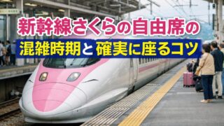 新幹線さくらの自由席は何号車?混雑しやすい時期や時間帯、GW・お盆・年末年始の傾向、確実に座るコツまでわかりやすく解説。自由席と指定席の違いも比較し、はじめての方でも安心して利用できる情報をまとめています。