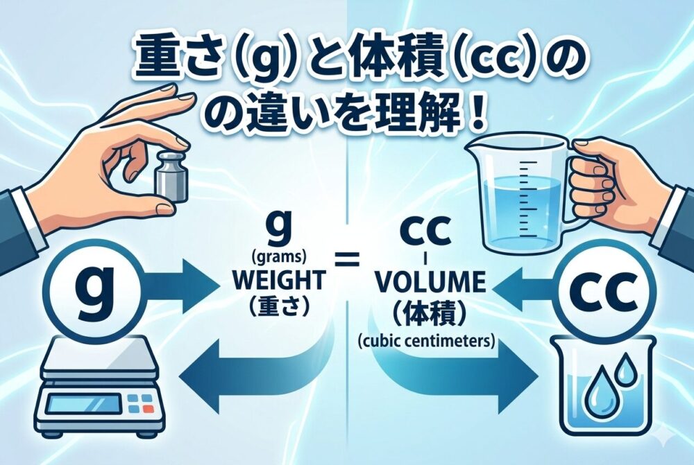同じ「1cc」でも中身が変われば重さも変わる、という点を押さえておけば、換算で迷いにくくなります。