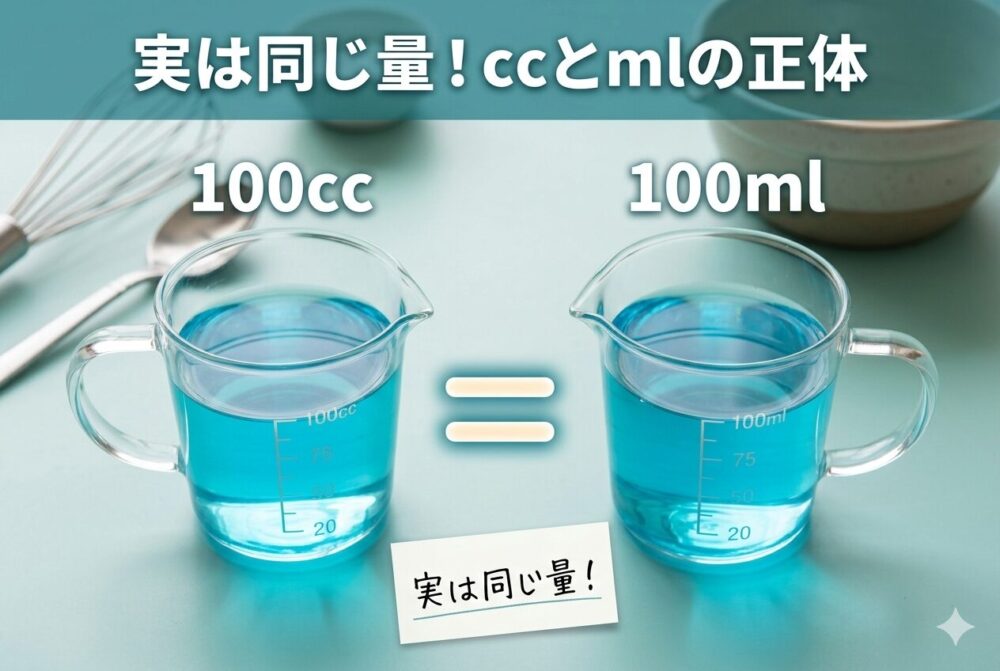 最近の家庭向けレシピではmlに統一されることが増えていますが、ccを見かけても同じ容量だと落ち着いて読み替えれば大丈夫です。
