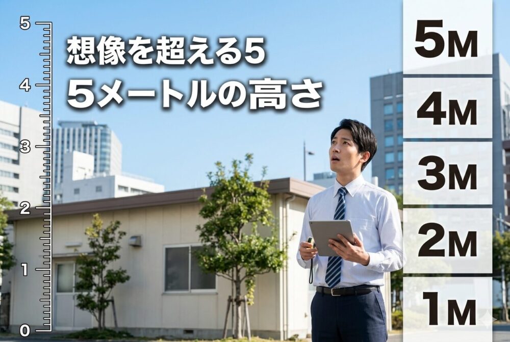 そのため、住宅街で見かける家の屋根の位置を目安にすると、5メートルの高さを直感的に理解しやすくなります。