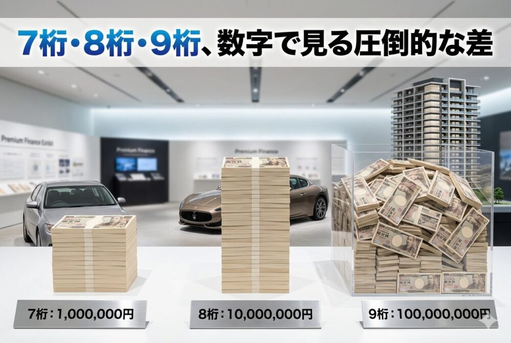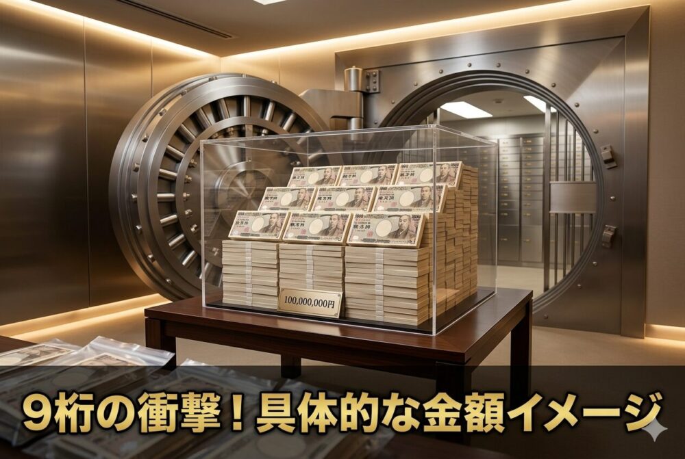 この記事では、9桁の金額を中心に、7桁・8桁との違いを早見表で整理しながら、年収や貯金のイメージまでわかりやすく解説していきます。