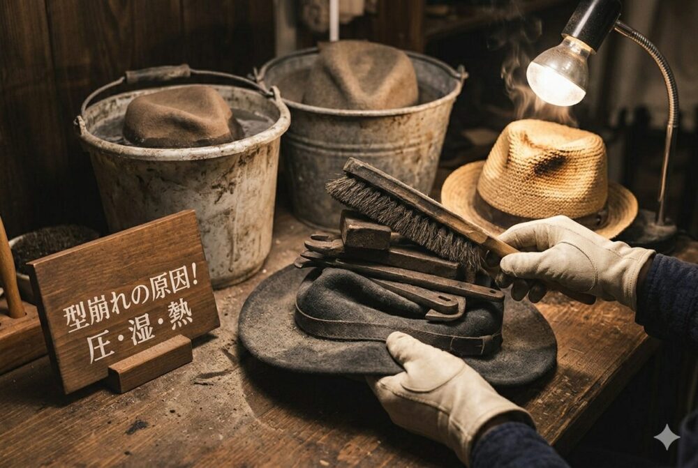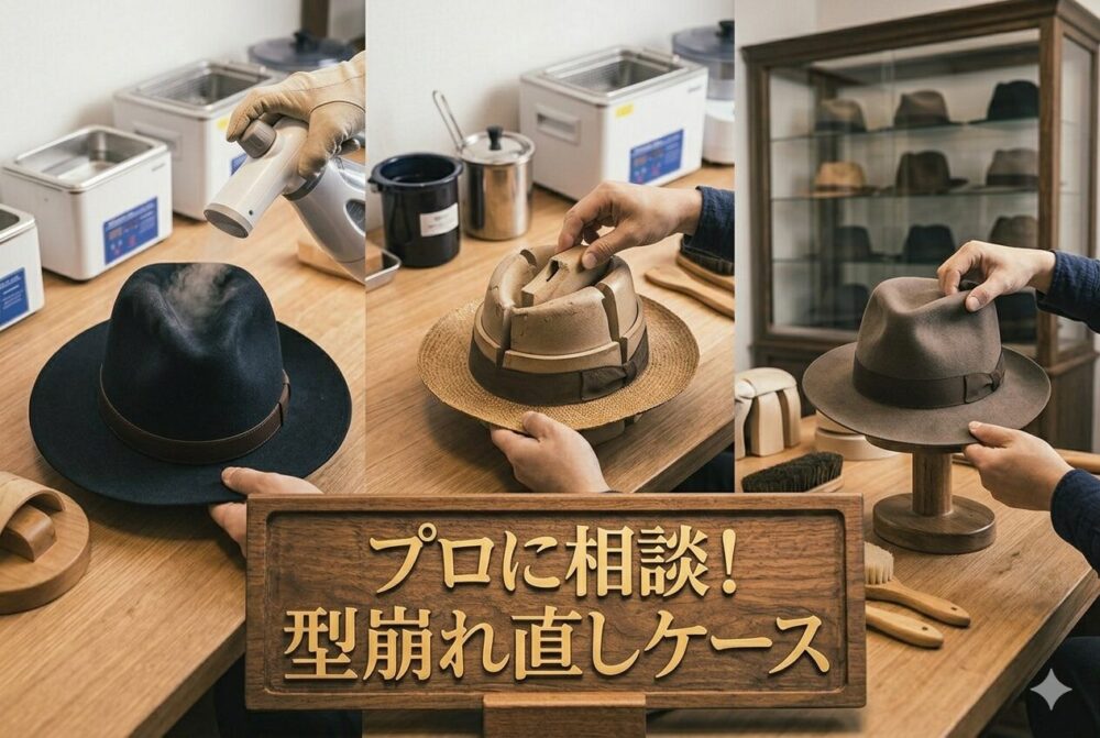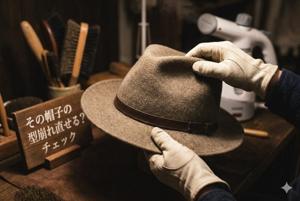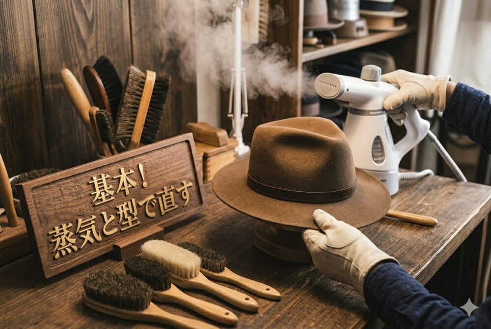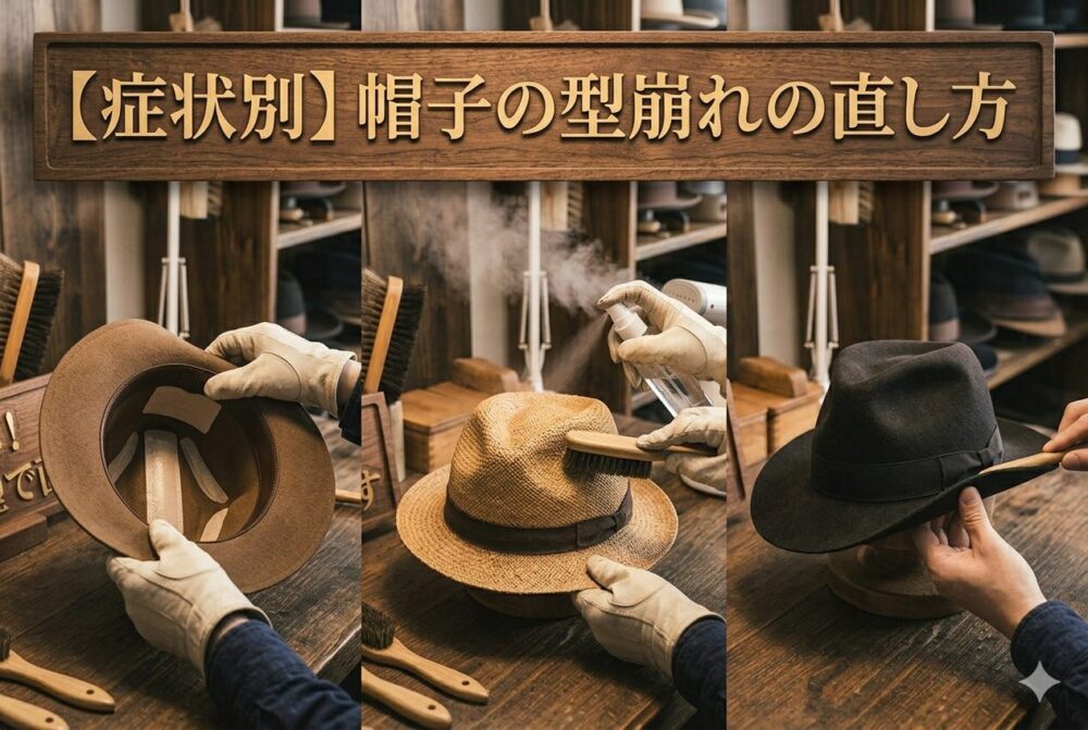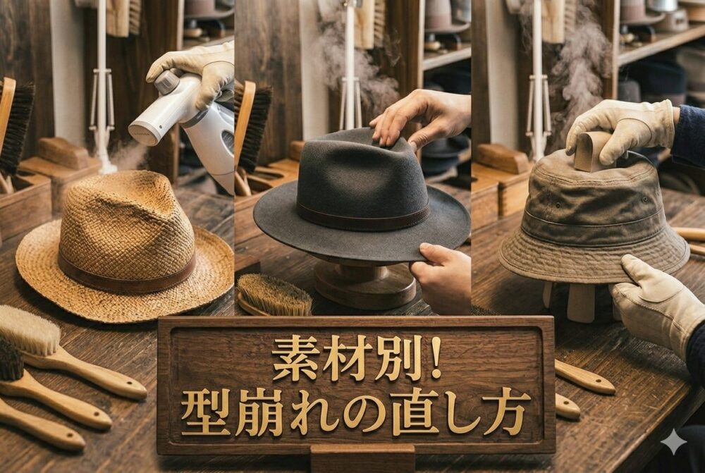 帽子の型崩れは、原因を知り、適切な方法でやさしく整えることで、自宅でも十分にケアできるケースが多くあります。