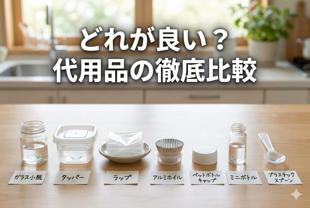 | 代用品 | 安全度 | 一晩OK? | フタ可能 | おすすめ度 |