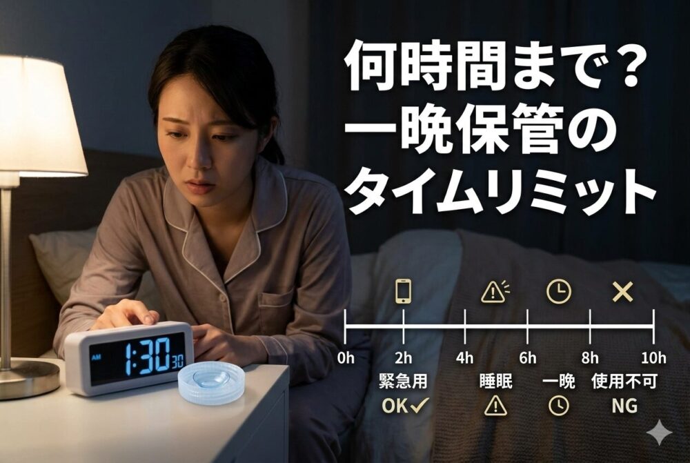 保存液が十分にあり、容器が清潔で、レンズが完全に浸かった状態を保てていれば、数時間の応急保管で助かることはあります。