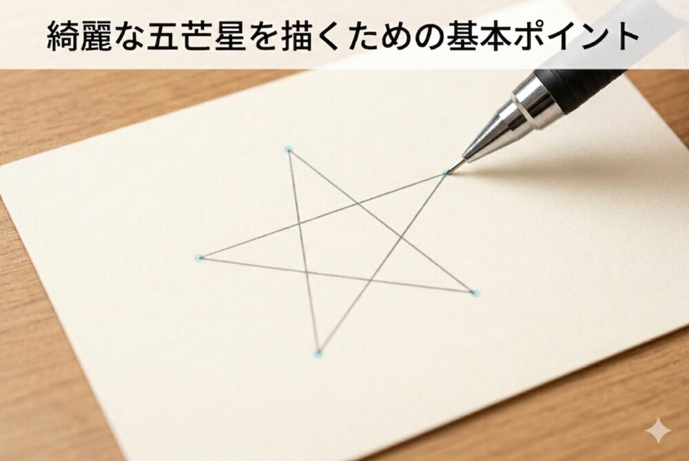 五芒星を綺麗に書くコツは、中心を意識し、線の長さと角度をそろえることです。
