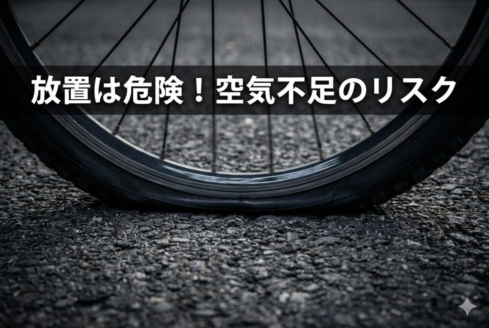 空気がかなり少ない状態で走ると、タイヤやリムを傷めることがあり、転倒のリスクも高くなります。