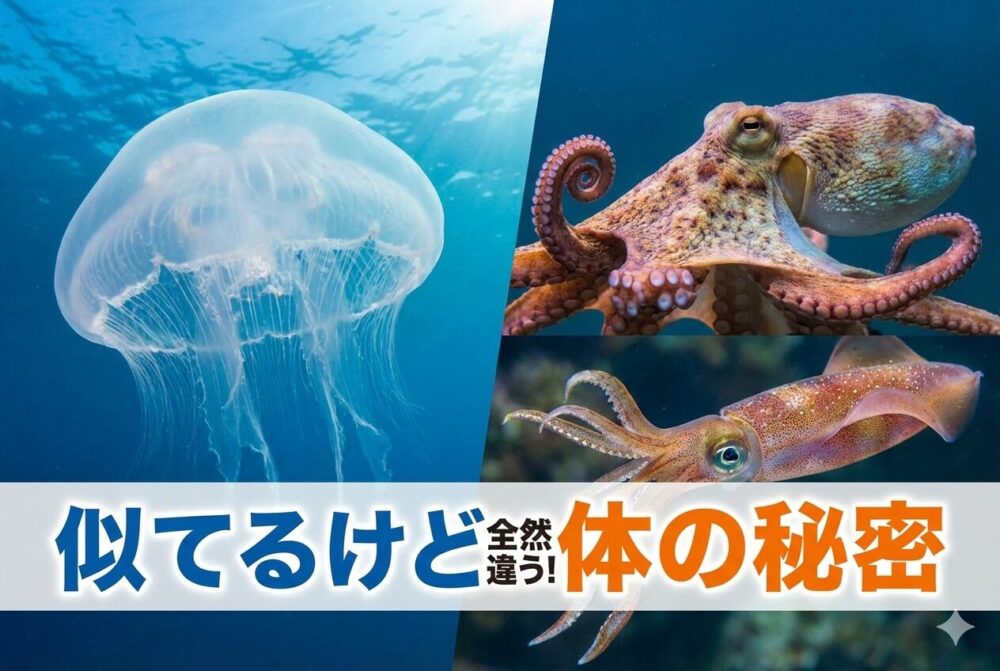 見た目が似ていることから、クラゲとタコやイカを同じ仲間だと思う人も少なくありません。