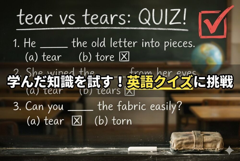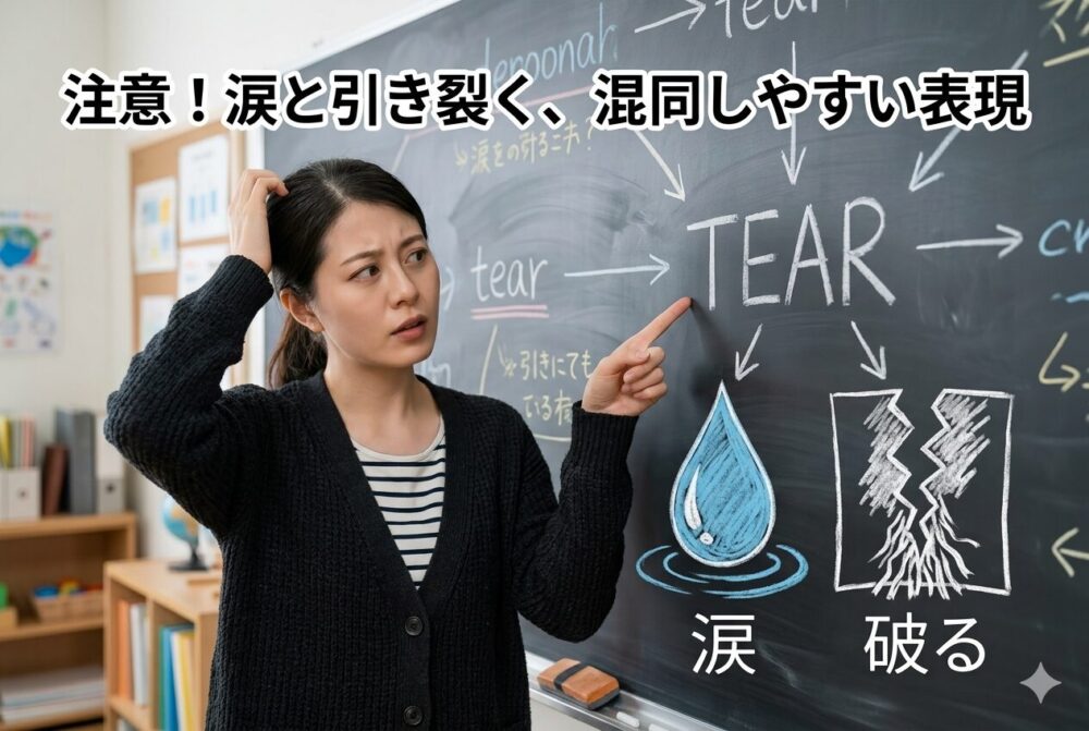tearとtearsは似ているため、学習者がつまずきやすい単語です。