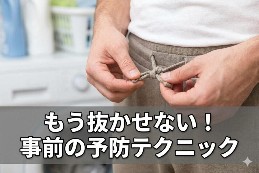 ズボンの紐が抜けないようにする予防策