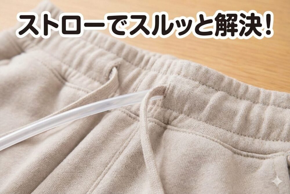 ストローでズボンの紐を通す方法【滑りが良い】